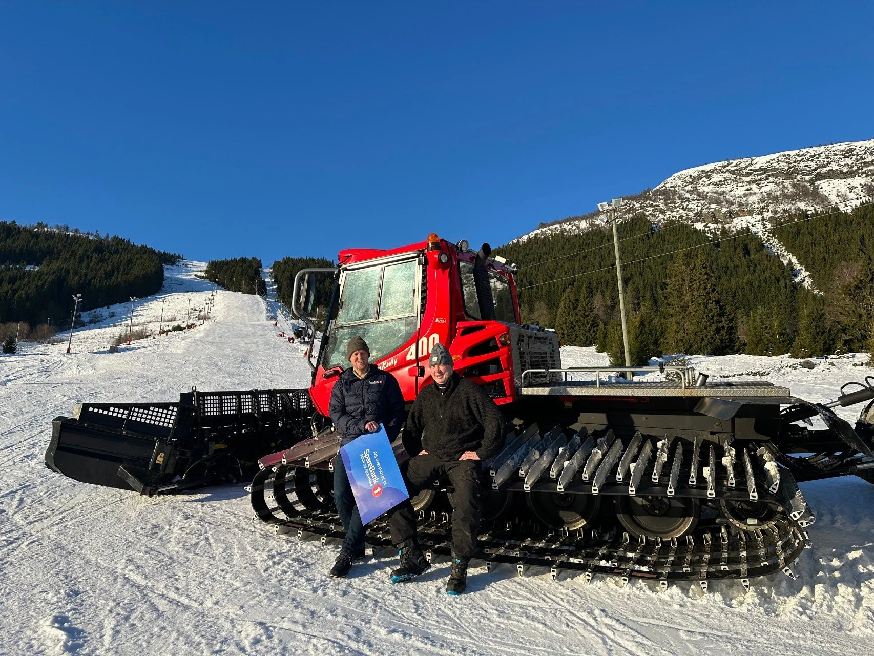 Sist veke dukka Andreas Bjelde frå SpareBank 1 Sogn og Fjordane opp med ein gåvesjekk på 400 000 kroner til skisenteret på Heggmyrane. Dermed kan den daglege leiaren i Sogn Skisenter puste letta ut, og vite at dei har finaniseringa på plass når det gjeld den nye trakkemaskina si.